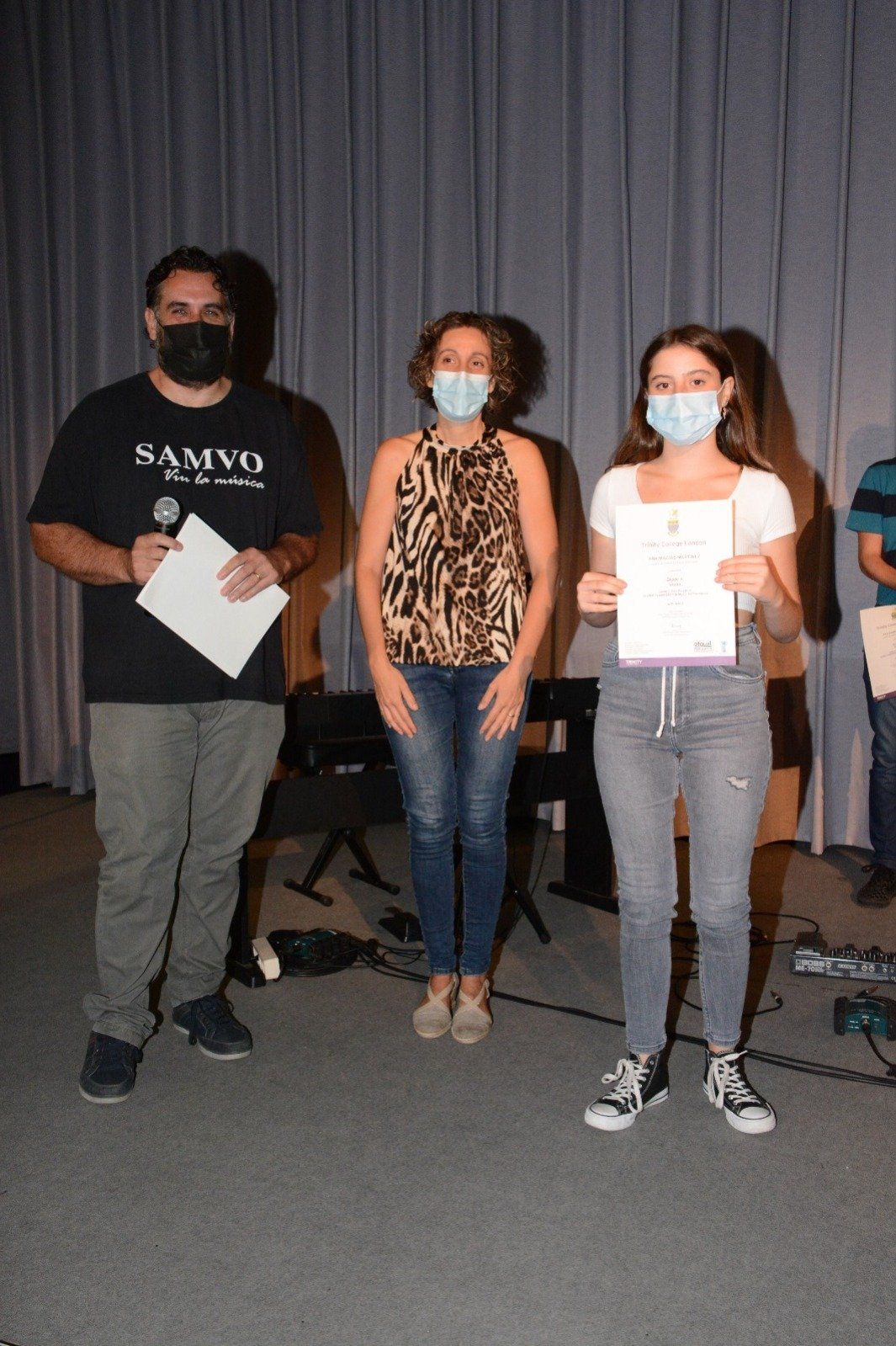 Ahir dijous 23 de setembre, vam viure l'acte d'inici de curs de la nostra escola de música on vam poder gaudir d'una hora d'emoció, sentiments i alegries. Emoció per ser el primer acte amb els lliuraments de certificats oficials que realitzem, sentiments perquè els artistes que van actuar ens van fer sentir la música en cadascun dels estils que van interpretar i alegries per veure als nostres primers graduats Trinity recollir la seua certificació oficial. Gràcies a Estela Badenes *Berrocal per formar part de l'acte, als nostres profes Pablo Gómez Galán i a Pedro Miguel Garrido Berjano per aqueixa dolçor i meravellosa manera de tocar, a Marcos Martins per aqueixa meravellosa veu que ens va fer somiar, al nostre cor SAMVO Castelló Gospel Experience que inicia una marxa al costat de Marcos com a director, que segur que portarà a tod@s grans alegries i per descomptat als nostres Victor Cano, Raul Cano, Pau Campos, Arnau Pla, Ana Macías, Adrián Górriz, Iker Herraiz i Ana Peris, primers graduats Trinity de l'escola, per ser com sou i gaudir de la música amb nosotr@s. Va ser un espectacle de primer nivell professional que ens fa estar feliços i emocionats. I com no, gràcies a Santi Cano per estar sempre ací i per aqueixes fotos fabuloses.